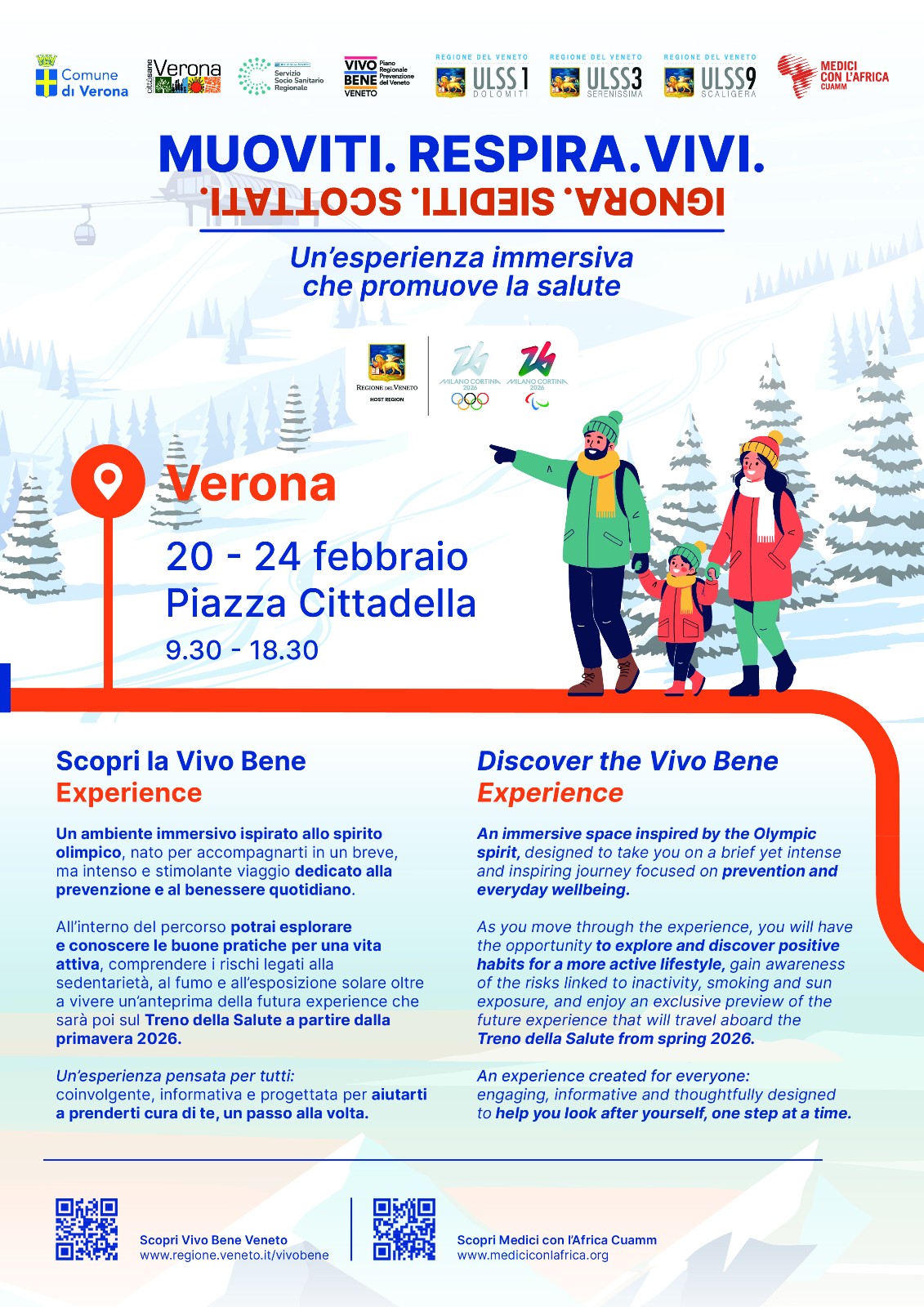 Medici con l’Africa CUAMM e le Aziende ULSS 1 Dolomiti, ULSS 3 Serenissima e ULSS 9 Scaligera, partner istituzionale il Comune di Verona, che rappresenta una “fermata speciale” del Treno della Salute, pensato per far vivere ai visitatori un’esperienza di sensibilizzazione sulla salute e sulla prevenzione.